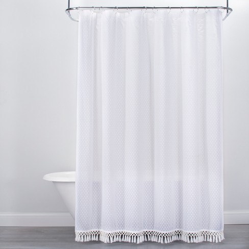 Textured Dot Fringed Shower Curtain White Opalhouse